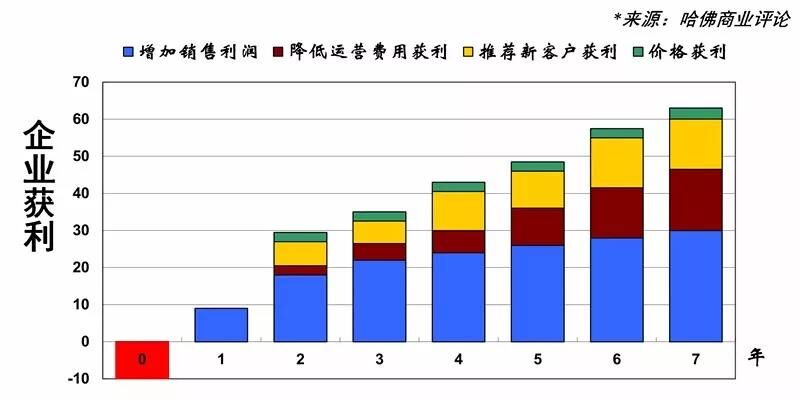 70%參與調(diào)研的公司都認(rèn)為,留住老客戶比吸引新客戶更加合算,因?yàn)槲驴蛻粜枰獜念^建立信任,其中的市場(chǎng)宣傳、廣告投入和營(yíng)銷(xiāo)費(fèi)用都十分昂貴,貝恩公司的研究報(bào)告顯示,客戶保持率增加5%,企業(yè)利潤(rùn)可以提升25%~95%,這正是老客戶的“溢價(jià)效應(yīng)”。