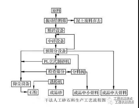 在北方天氣寒冷、干旱、少雨、水資源嚴重缺乏地區(qū),多采用干法制砂生產工藝。干法制砂生產工藝開始于上世紀90年代中期,經過不斷發(fā)展和完善,逐步解決了干法制砂中的泥土含量、石粉含量和粉塵污染問題,不僅在北方中小型砂石廠廣泛應用,而且在南方大中型水電人工砂石料系統(tǒng)也大量采用。