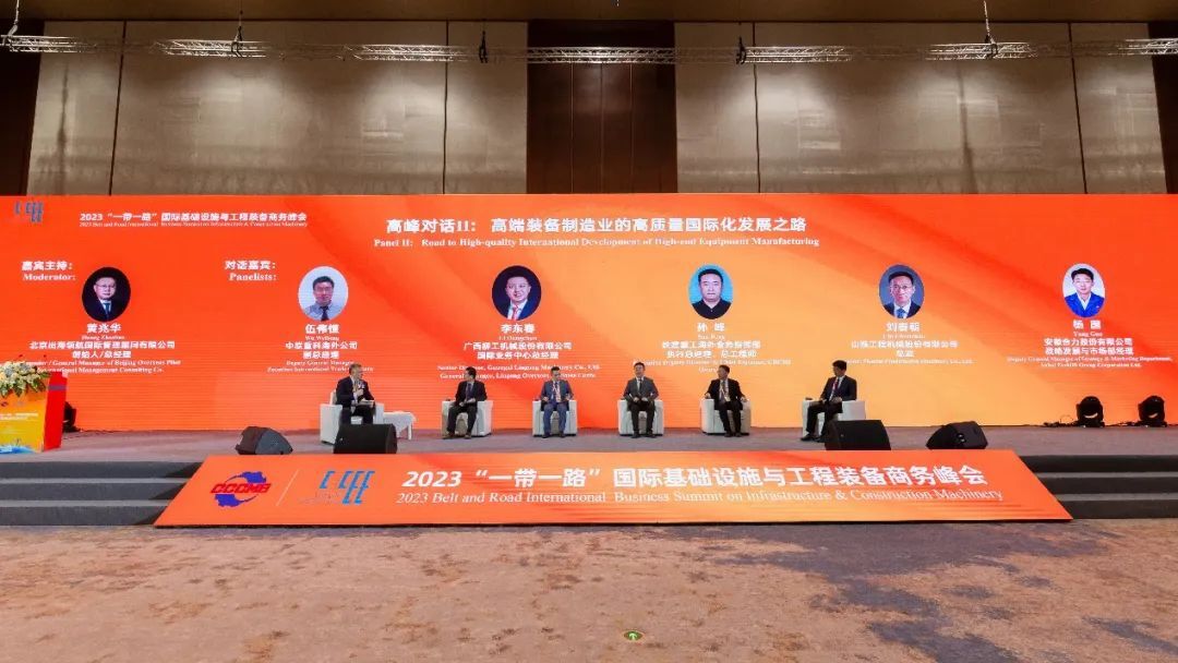 第二場高峰對話由北京出海領(lǐng)航國際管理顧問有限公司創(chuàng)始人、總經(jīng)理黃兆華主持,邀請中聯(lián)重科、廣西柳工、山推、鐵建重工、安徽合力公司高管,圍繞“高端裝備制造業(yè)的高質(zhì)量國際化發(fā)展之路”展開對話交流,對話嘉賓聚焦后疫情時代國際基礎(chǔ)設(shè)施發(fā)展的機遇,分享工程裝備制造業(yè)高質(zhì)量發(fā)展的經(jīng)驗和建議。