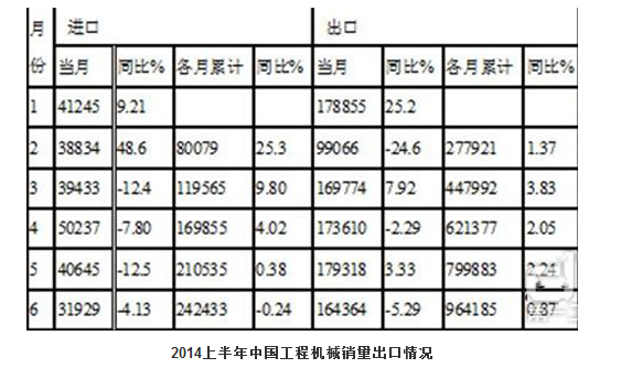 2014年上半年工程機(jī)械進(jìn)出口情況