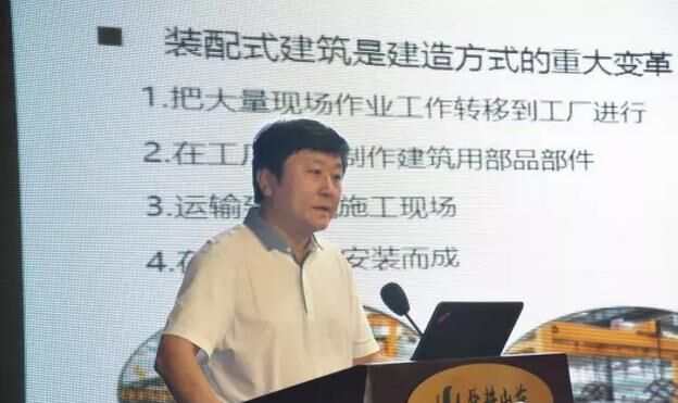 ▼ 山東萬(wàn)斯達(dá)集團(tuán)董事長(zhǎng)張波做“建筑產(chǎn)業(yè)化概論“的演講;