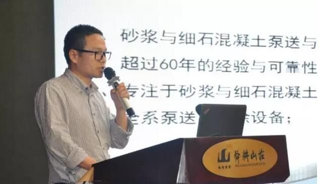 ▼ 中聯(lián)重科干混部技術(shù)總監(jiān)吳漫天做“預(yù)拌砂漿3.0”的演講;