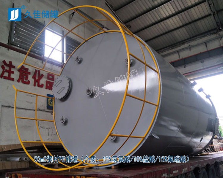 氫氟酸儲罐材質(zhì)  廣東鋼襯PE氫氟酸儲罐廠家 久佳牌 訂制 鋼襯塑酸堿儲存罐特性:鋼襯塑儲罐由于其獨特的滾塑工藝、產(chǎn)品整體結(jié)構(gòu)和材料優(yōu)異性能,具有整體性好、強度高、無焊縫、不滲漏、抗沖擊、韌性好、重量輕、壽命長、耐酸堿、耐有機溶媒、符合衛(wèi)生標準、價格低廉、規(guī)格品種多等特點。尤其耐腐蝕、長壽命和大規(guī)格品種有非常大的優(yōu)勢,是貯存和運輸各類化工液體半固體的理想產(chǎn)品。其性能大大超過了傳統(tǒng)的玻璃鋼、陶瓷、橡膠、焊接塑料等材料制作的防腐儲罐。已成為傳統(tǒng)防腐儲罐的升級換代產(chǎn)品,逐漸成為防腐儲罐的首選產(chǎn)品。