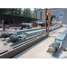 在頭節(jié)內(nèi)裝有支推軸承承受軸向力,在中間節(jié)和尾節(jié)內(nèi)裝有用軸承支承螺旋軸,此外,在尾節(jié)內(nèi)還裝有可軸向移動(dòng)的徑向軸承以補(bǔ)償螺旋軸長(zhǎng)度的誤差和適應(yīng)溫度的變化。螺旋面的形式有實(shí)體螺旋(S制法)和帶式螺旋(D制法)兩種。各螺旋軸之間采用法蘭式聯(lián)接,保證了聯(lián)接軸的互換性,便于維修。