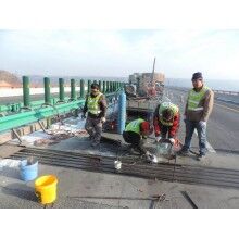 日本在修補(bǔ)伸縮縫時(shí)采用樹脂混凝土、超早強(qiáng)水泥,這種超早強(qiáng)復(fù)合材料養(yǎng)生時(shí)間較短,國內(nèi)這幾年來也在使用新型超早強(qiáng)復(fù)合水泥,自加水后2小時(shí)恢復(fù)交通。