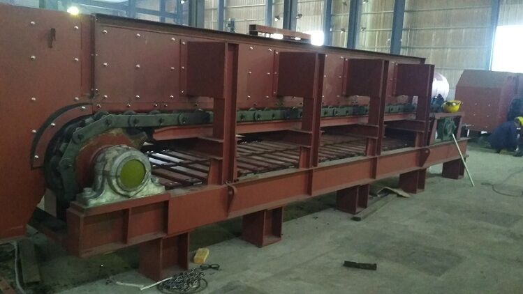 齒輥式破碎機通常用于破碎粘性物料,如紅土鎳礦,煤矸石等物料。由于這種物料的特殊性-較大的粘性,需要用合適的輸送機給齒輥式破碎機喂料。這也是許多紅土鎳礦制造業(yè)比較關心的問題。以下結合我公司多年板式給料機的制造經(jīng)驗,做一些說明。