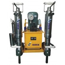 液壓劈裂機由泵站和分裂器兩大部分組成,工作時由泵站輸出的高壓油驅(qū)動油缸,產(chǎn)生巨大推力,驅(qū)動楔塊組中的中間楔塊向前伸出,將反向楔塊向兩邊撐開,即可使被分裂物體分裂。