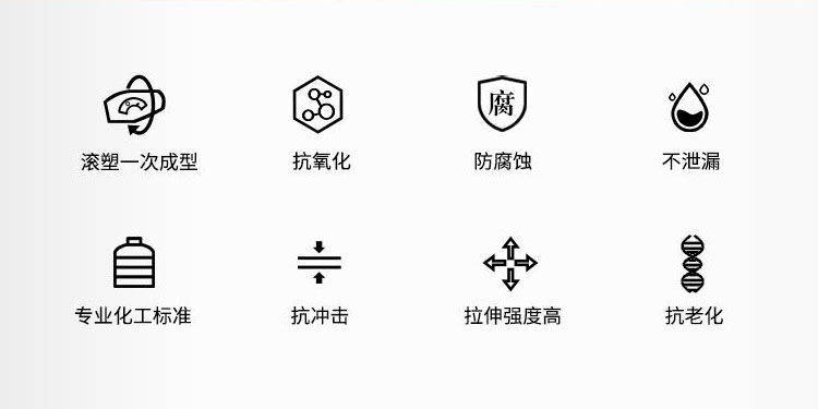 1、以進(jìn)口LLDPE為原料,采用滾塑一次成型;